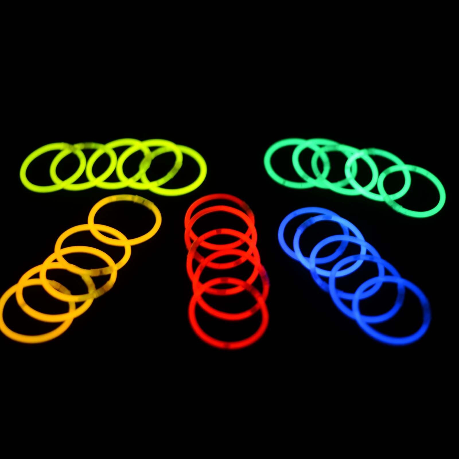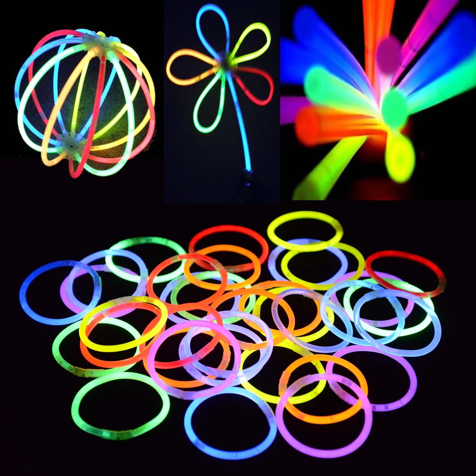 -Inside the glow stick bracelets are two chemicals that emit light or glow when they are mixed together. Inside the glow stick bracelets is a thin glass tube, when you bend it for the first time, you break the inner glass tube. This mixes the two chemicals together. Just shake it up, it starts glowing like magic.