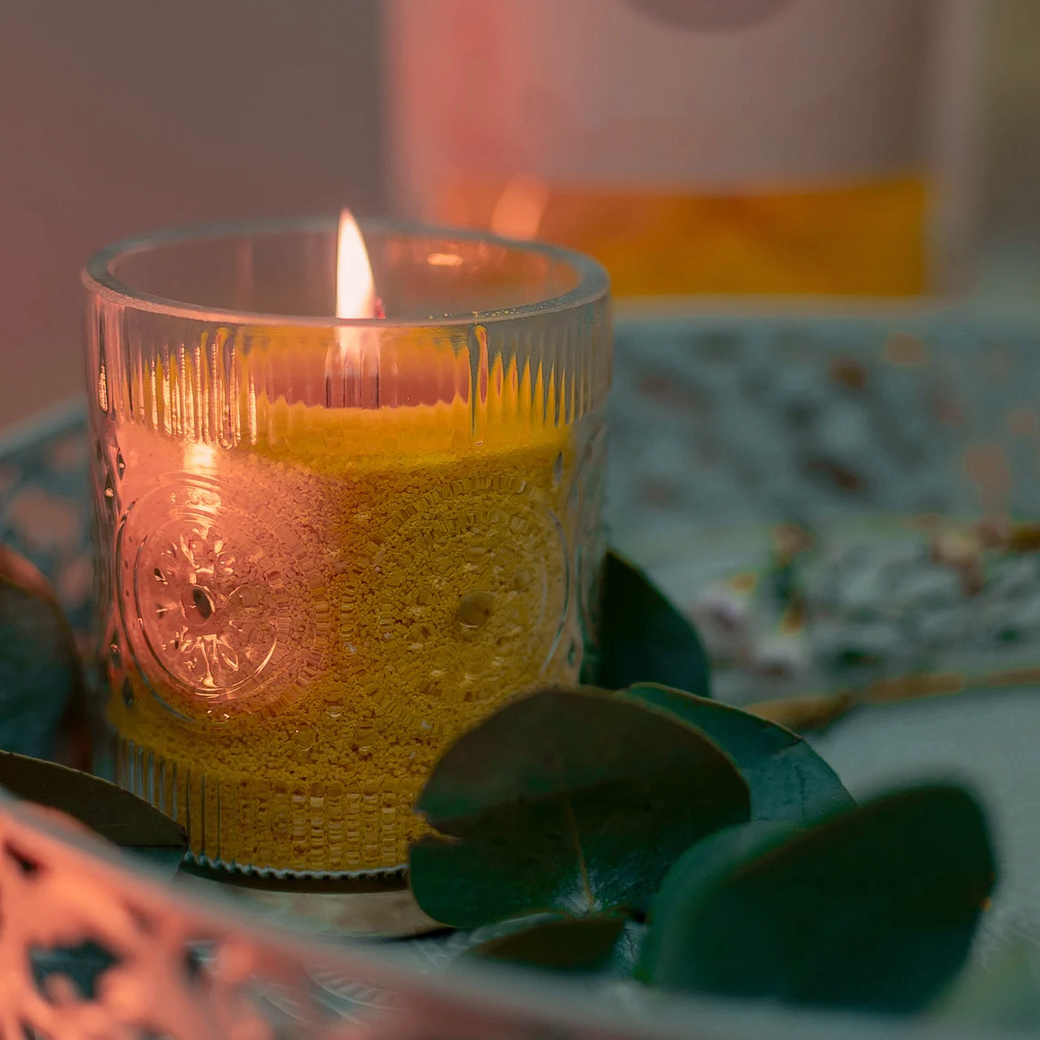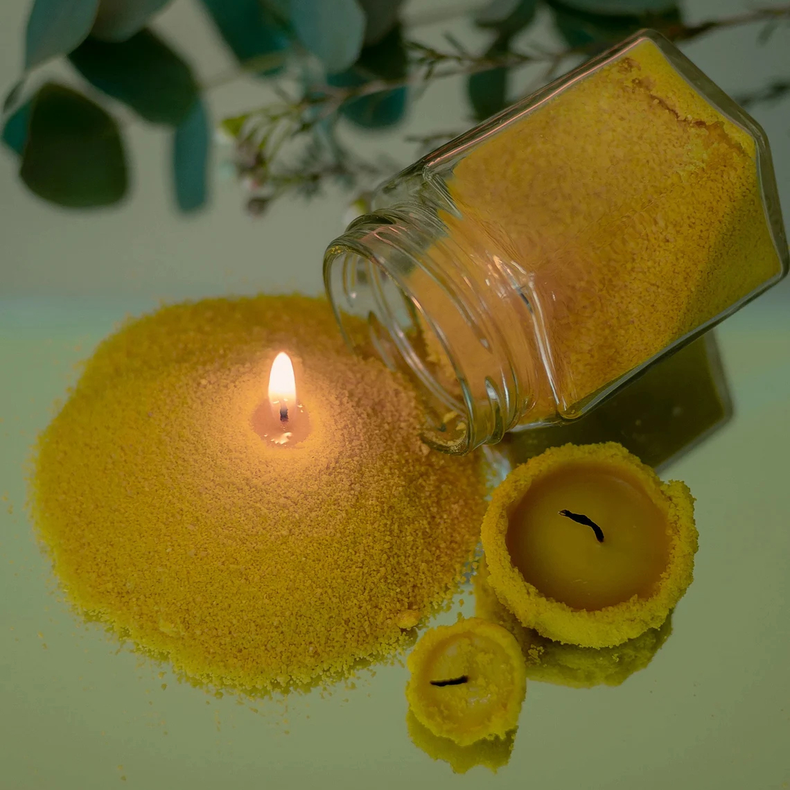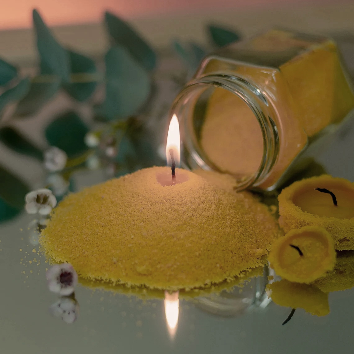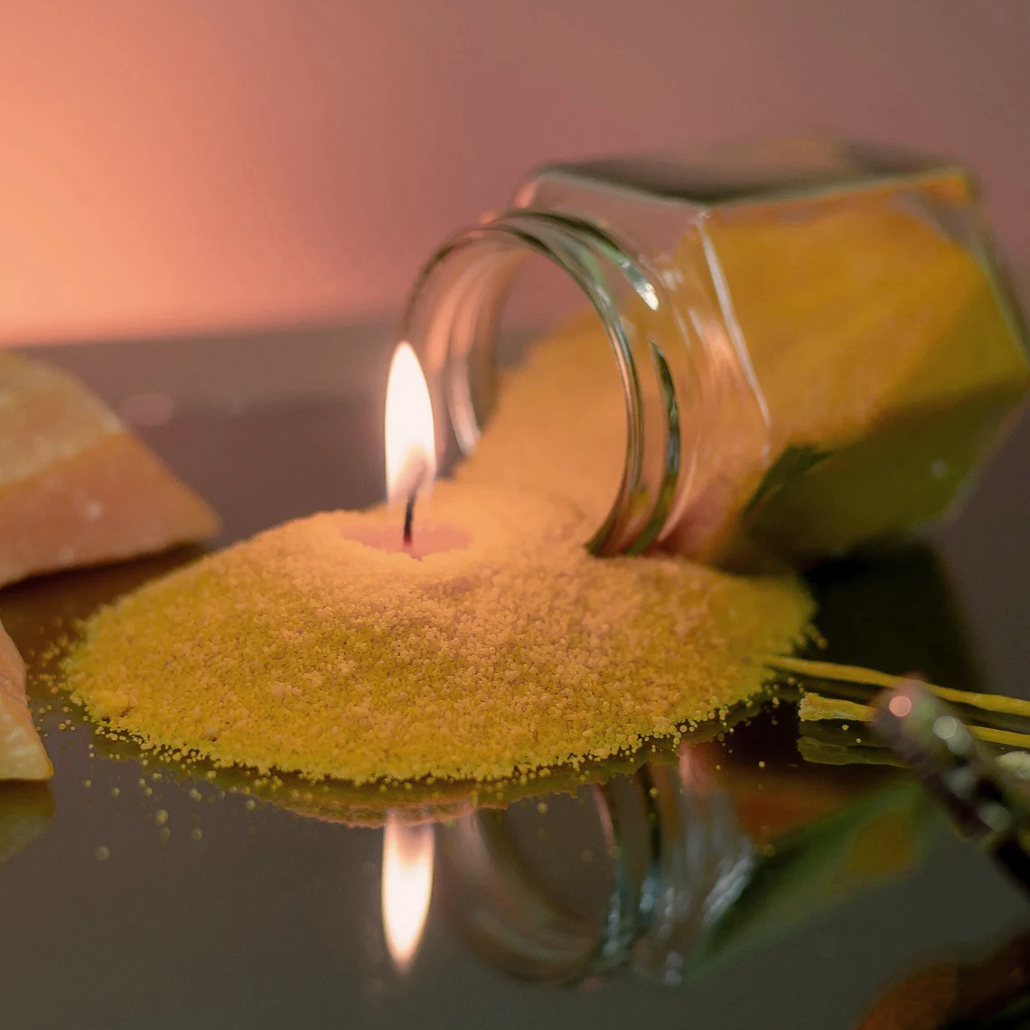 Usage: Pour Candle sand wax particles into a container, insert a cotton wick, and then light the candle