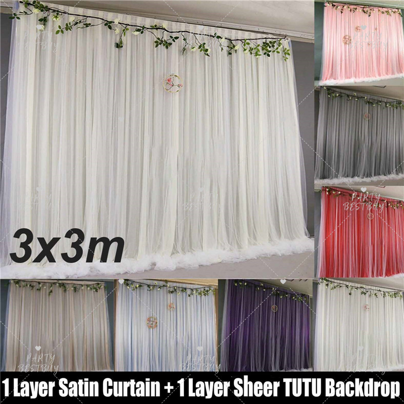 – 3Mx3M 1 layer Satin Curtain + 1 layer Sheer TUTU Backdrop