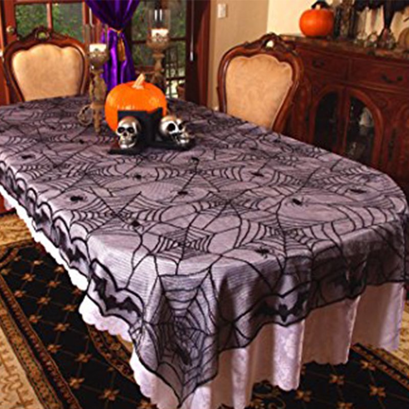 244*122cm Black Lace Halloween Decorations Tablecloth