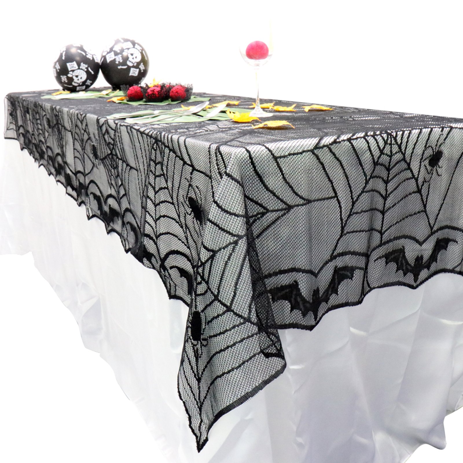 Black lace bat and spider web pattern create a bloodcurdling atmosphere for Halloween