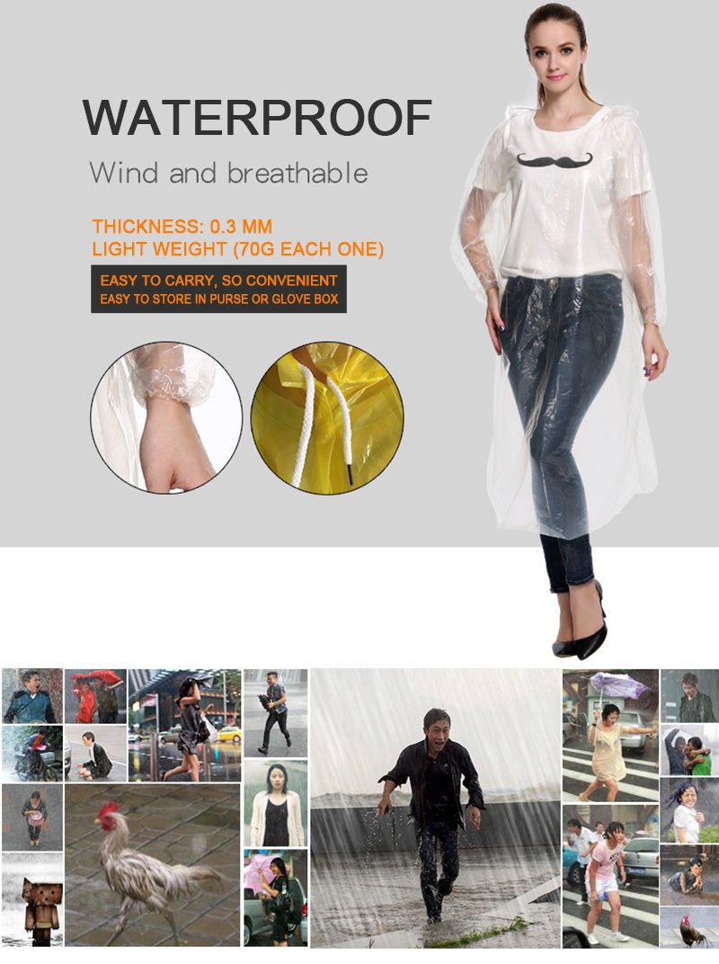-50PCS OR 100PCS Transparent disposable rain poncho