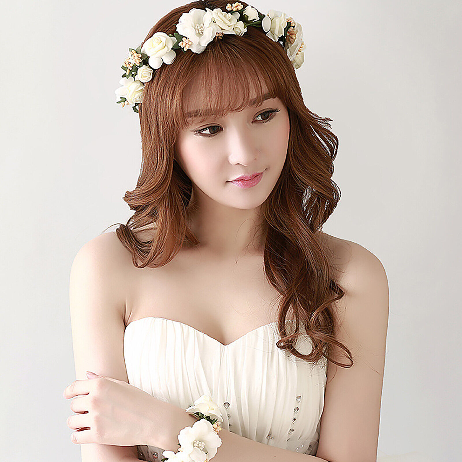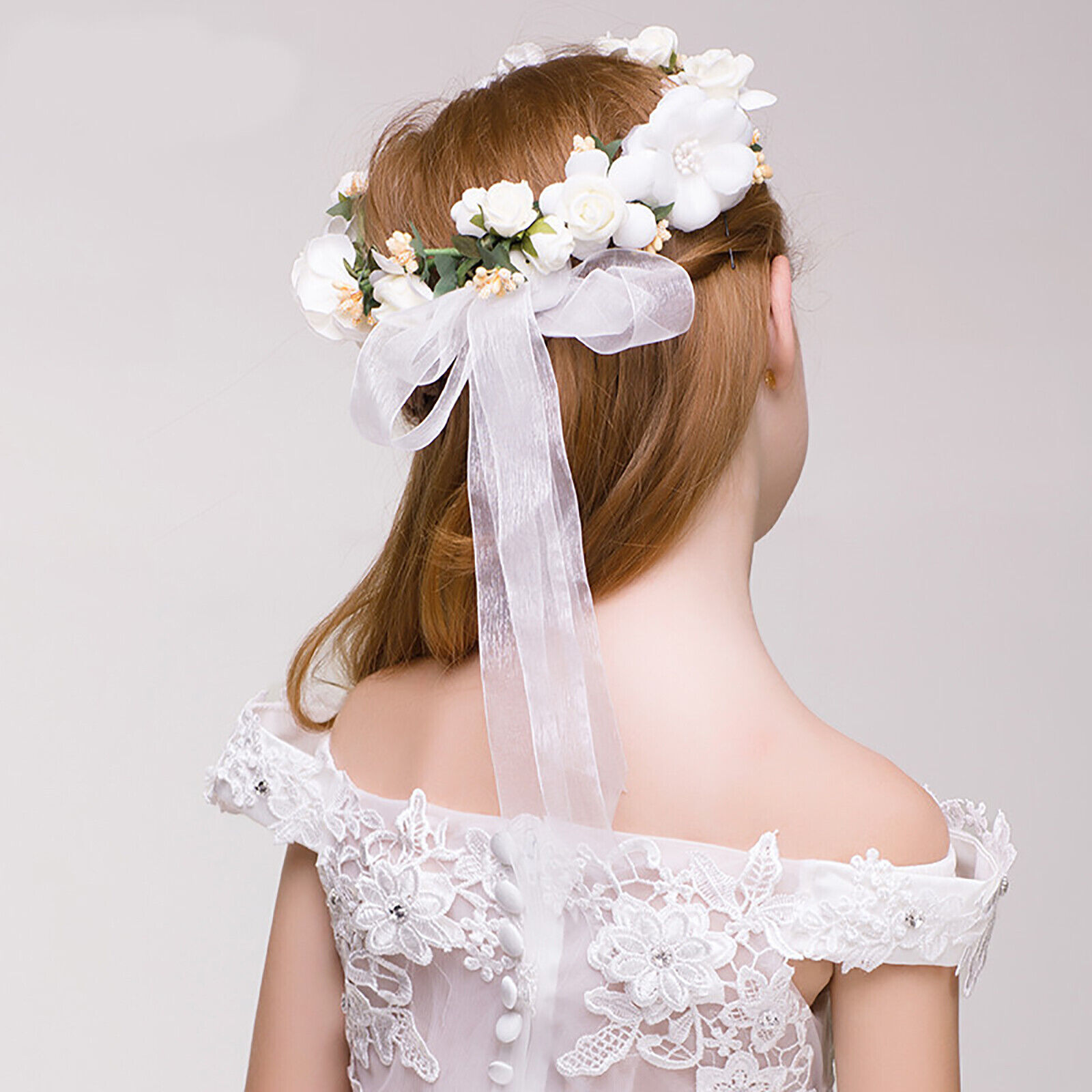 Women Girl Crown Wreath Wedding White Flower Headband Garland Hair Band Floral A